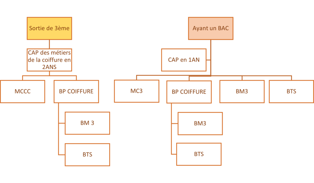 Dispense des blocs de compétences : 3;4;5. Pour les titulaires d’un BAC bloc 3 : français Histoire et géographie et enseignement moral et civique bloc 4 : mathématique, physique chimie bloc 5 : Education physique et sportive bloc 6 : langues vivantes bloc 7 : facultatif : arts appliqués | bloc 1 : réalisation des prestations de coiffure • Technique de coiffure. • Coupe, coiffage «Hommes femmes» • Coupe, couleur, forme «Femme » Savoirs associés: Technologie, Biologie appliquée. bloc 2 : Relation clientèle et participation à l’activité de l’entreprise. • accueillir et prise de rendez vous • conseiller et vendre des services , produits, matériels • contribuer à l’activité de l’entreprise Prévention Sécurité Environnement |